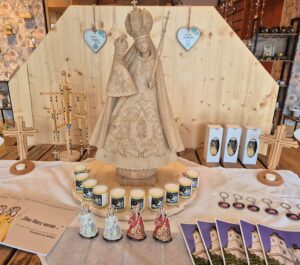Die neue handgeschnitzte Madonna von Maria Schutz dürfen Sie in den nächsten Wochen bei uns im Wallfahrtsladen besichtigen.